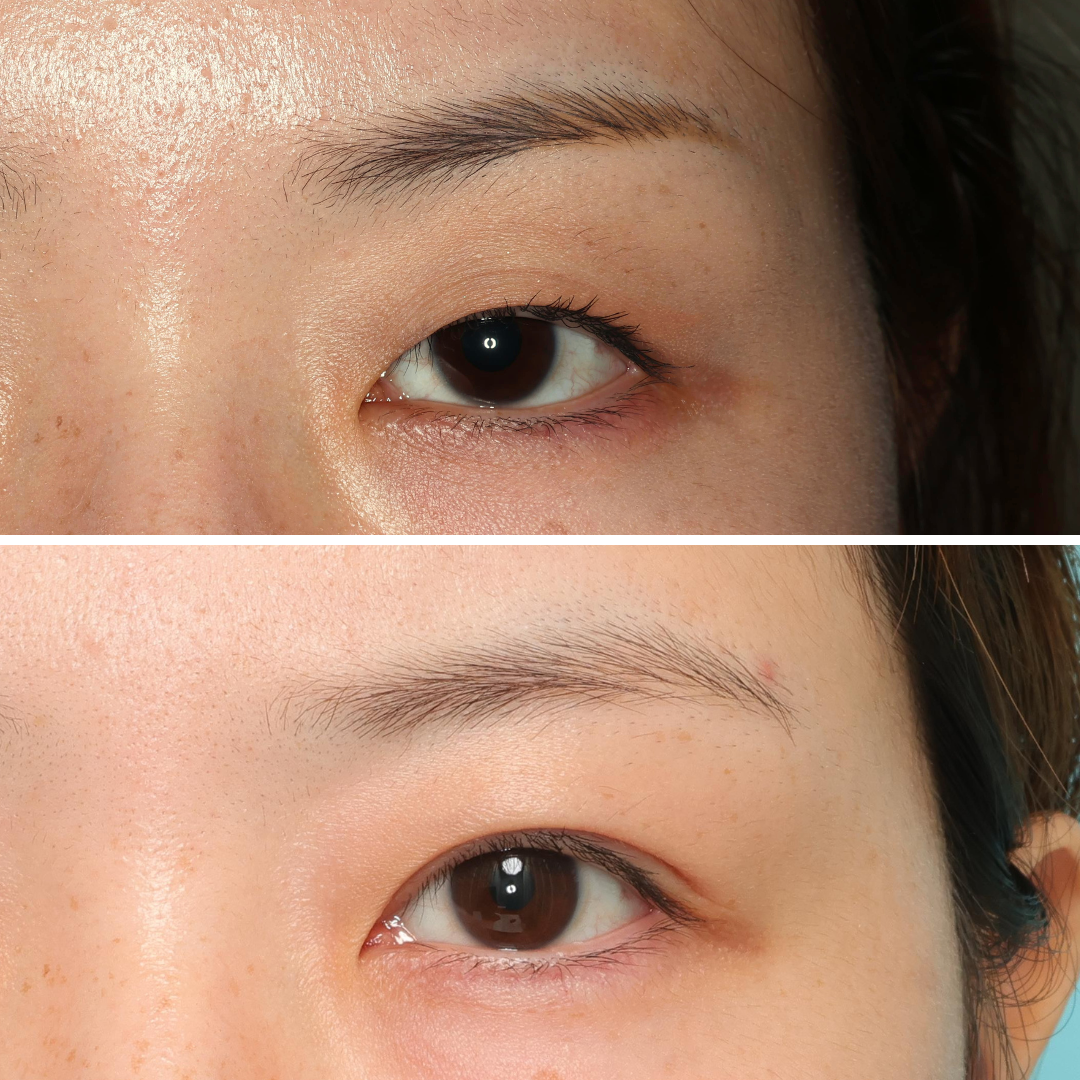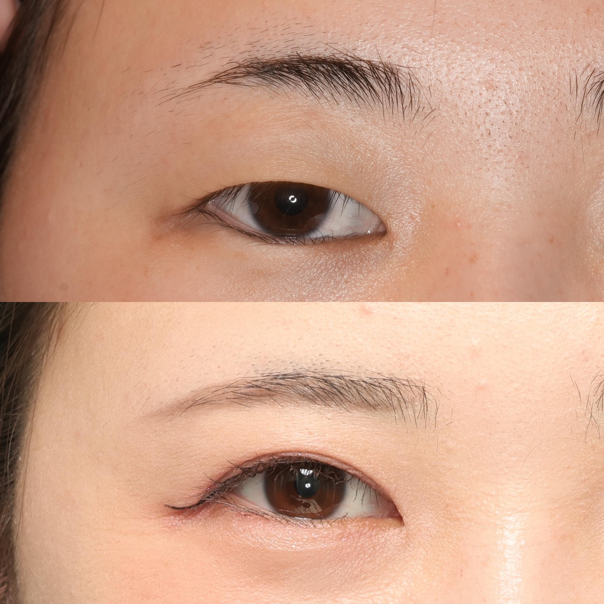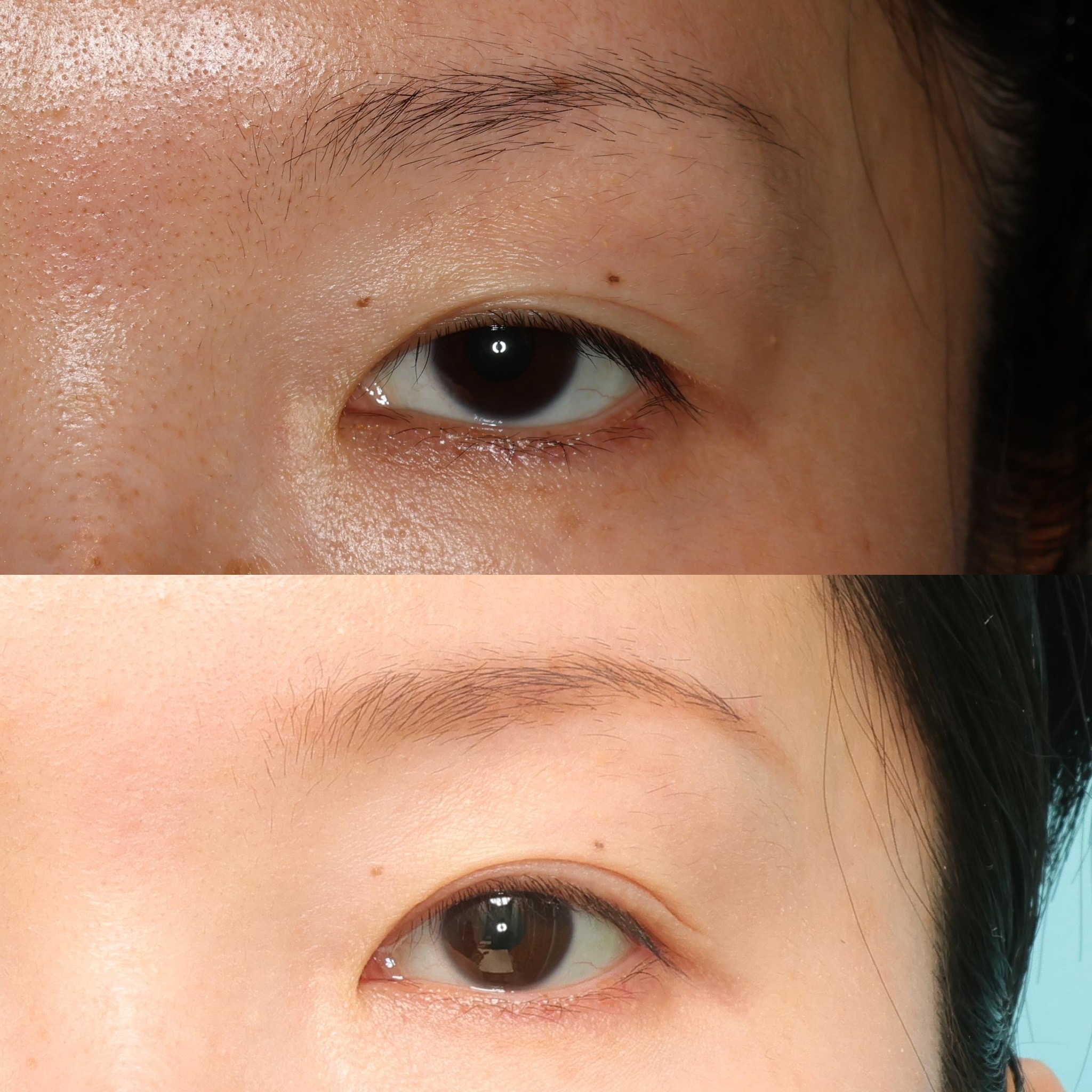 この方は、まぶたをしっかりと開かせるために眼瞼下垂手術を同時に行っています。