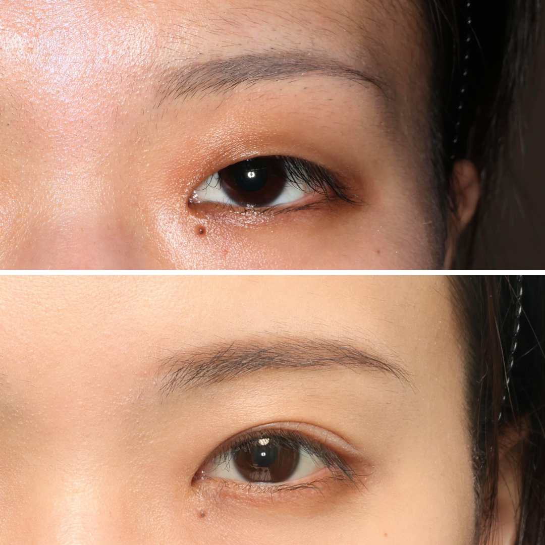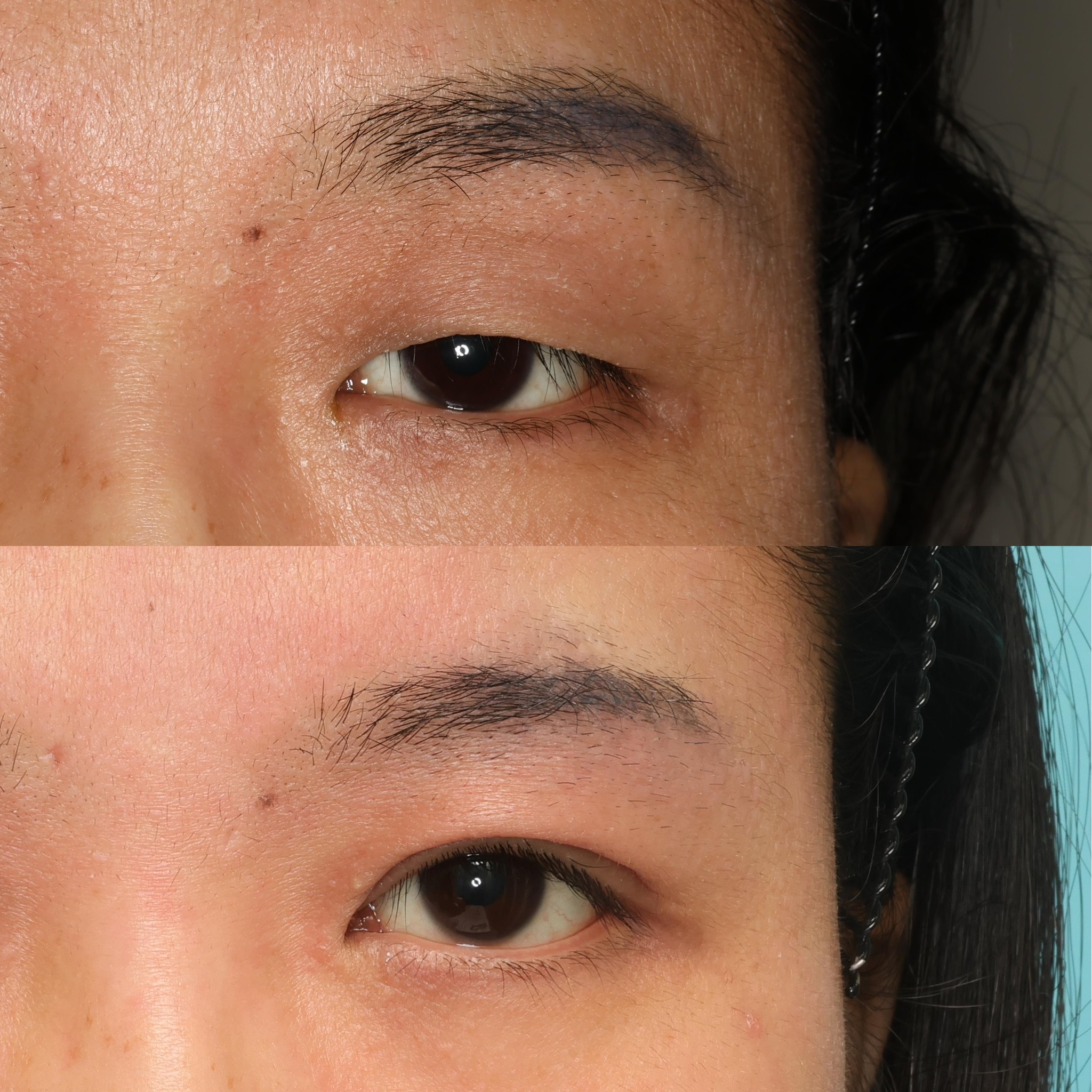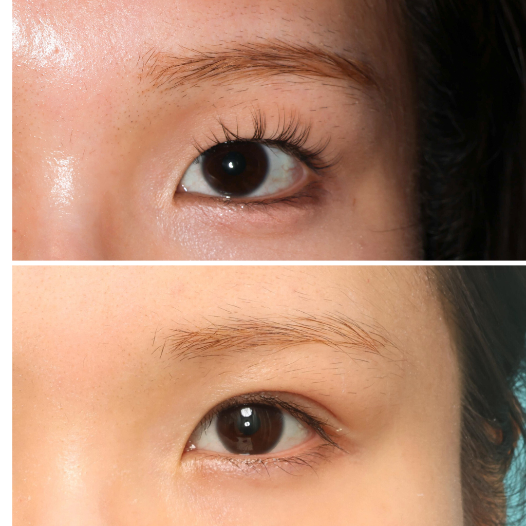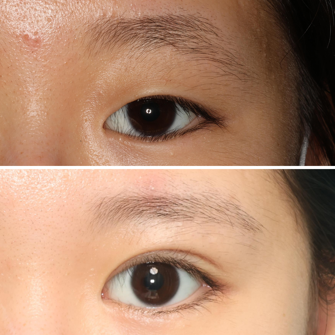 この方は、まぶたをしっかりと開かせるために眼瞼下垂手術を同時に行っています。
