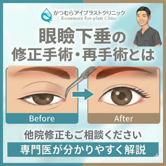 眼瞼下垂の修正手術・再手術とは?検討するときの判断軸・タイミング・注意点 公開日:2026年1月16日 更新日:2026年1月19日 まぶた(瞼) 監修:かつむらアイプラストクリニック 院長 勝村宇博 ※本記事は一般的な医療情報… 続きを読む